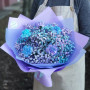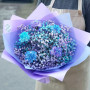 На фото букет из 5 голубых гипсофил и гвоздик. В составе: гипсофила 5 шт, гвоздика 4 шт, крафт-бумага 1 шт, атласная лента 1 шт, . Все цветы свежие и ароматные, букет красиво оформлен и отлично подходит для подарка. Доступна доставка цветов или самовывоз.